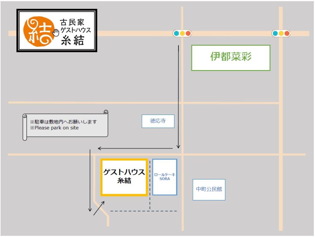 A:敷地内に無料駐車スペースが3台分程度ございます。予約は不要ですのが、ゲストが多い場合は早く来たゲストが優先となります。